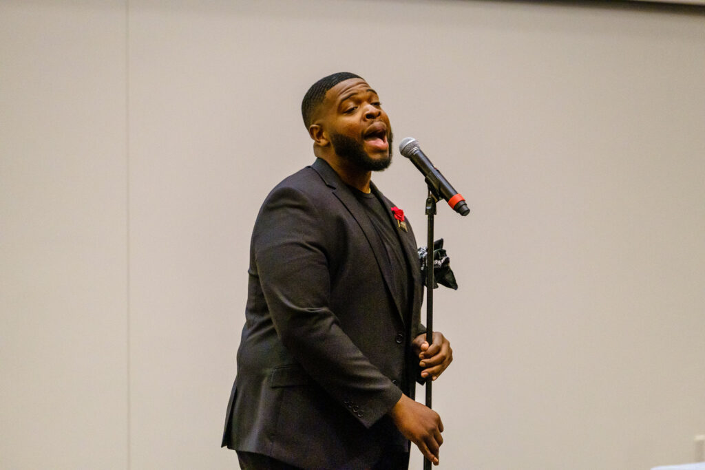 The program concluded with an inspiring performance by Chris Teague (pictured above) and an audio clip on the history of Heman Marion Sweatt. Narrated by Brenda Burt, the clip was pulled from the first chapter of “Overcoming: The First History of Desegregation at the University of Texas at Austin,” written by the beloved Almetris Marsh Duren and UT staff member Louise Iscoe in 1979.