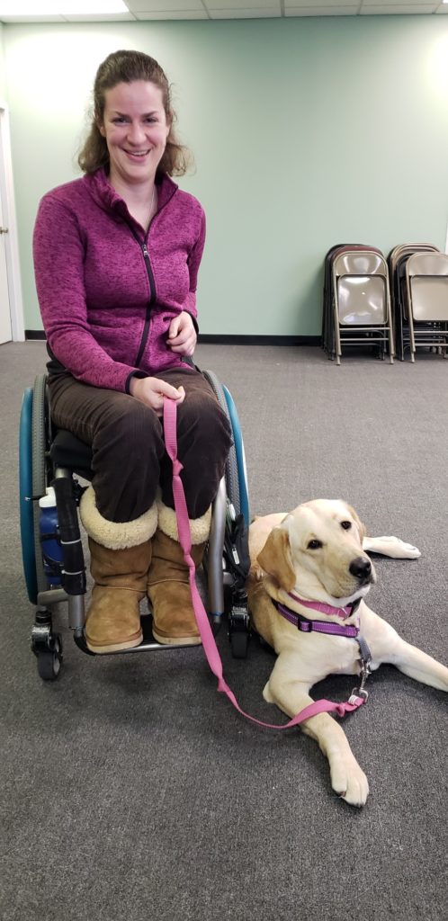 “Maple loves people and is very friendly but when she has her vest on, she needs to be focused on her job,” Shryock adds. “During the first few months a service dog team is matched, it is especially important for Maple to learn good habits, which include focusing on her human and not getting distracted by people and activity going on around her.”